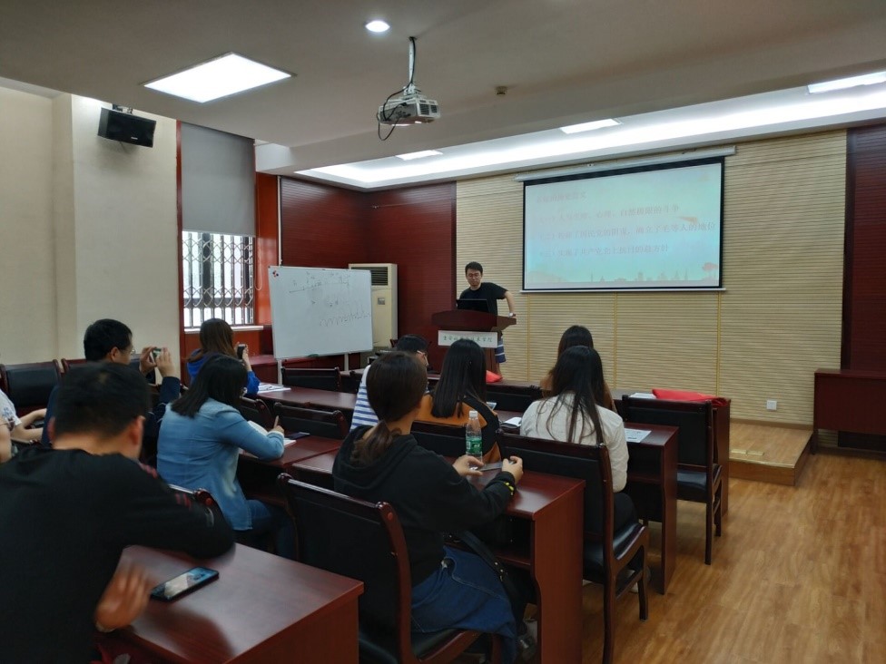 活动第一项,由研究生第四支部宣传委员冯禹锟给广大党员讲述红军两万五千里长征的故事。 冯禹锟强调,广大党员要传承长征精神,坚定“永远跟党走”的信念。自觉把个人抱负与国家前途和民族命运维系在一起,不断增强政治意识、大局意识、核心意识、看齐意识。