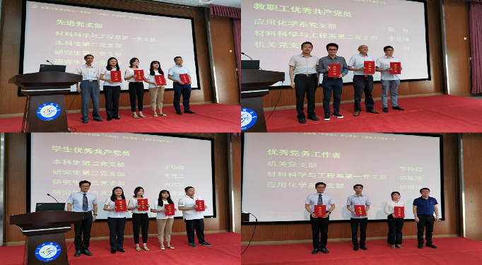 本次表彰会分别设立先进党支部、优秀共产党员、优秀党务工作者和“材料先锋”。其中,“优秀共产党员”重点表彰在教学、科研、管理和服务一线等岗位中业绩突出,在个人学习和学生工作中表现突出并发挥党员先锋模范作用的师生党员;“材料先锋”表彰在支部工作和推动学院发展中乐于奉献、积极服务并发挥积极带头作用的党员教师。学院党委副书记程炼同志宣读表彰决定,共计对4个师生党支部和18名师生党员进行了表彰。