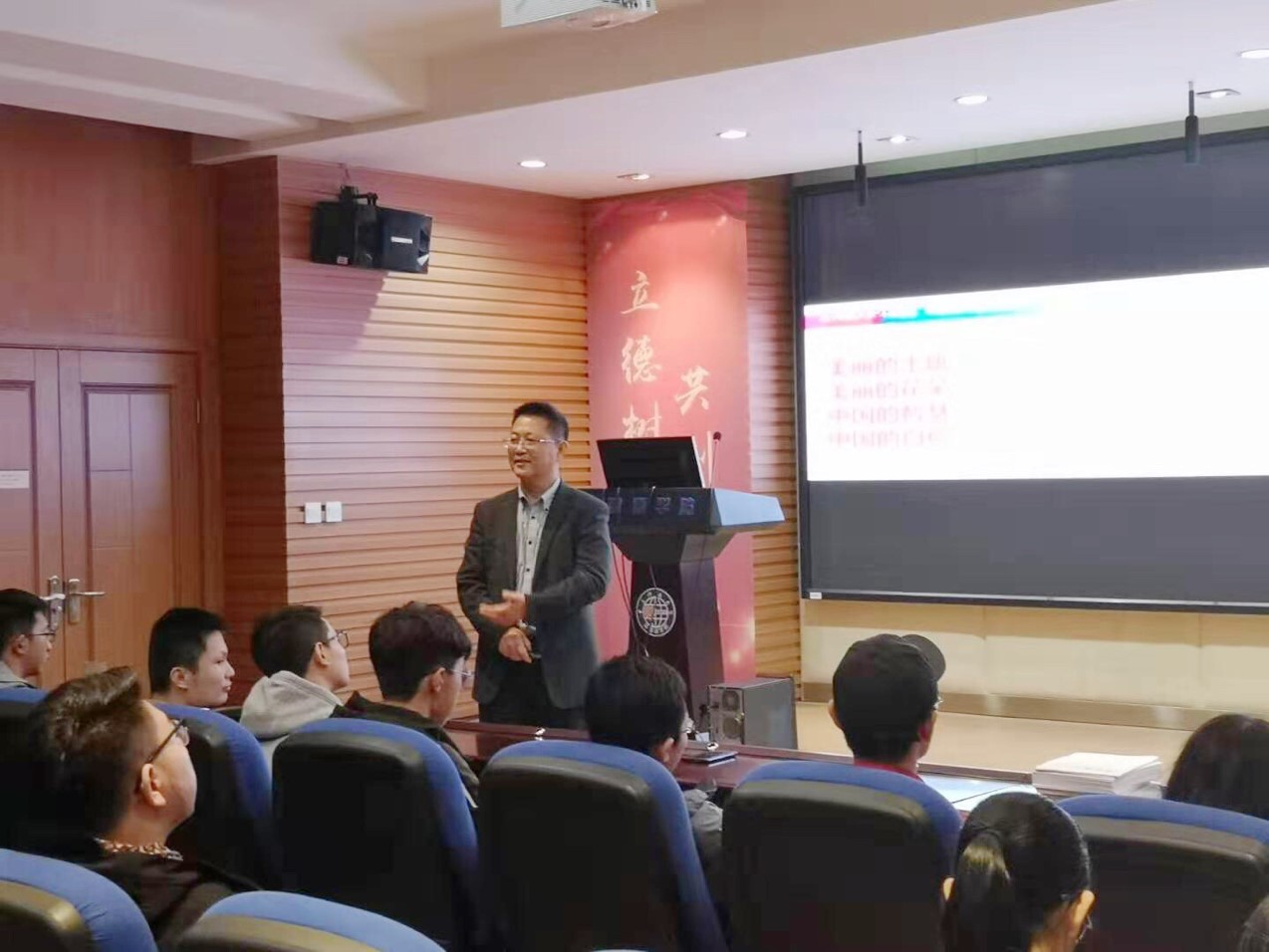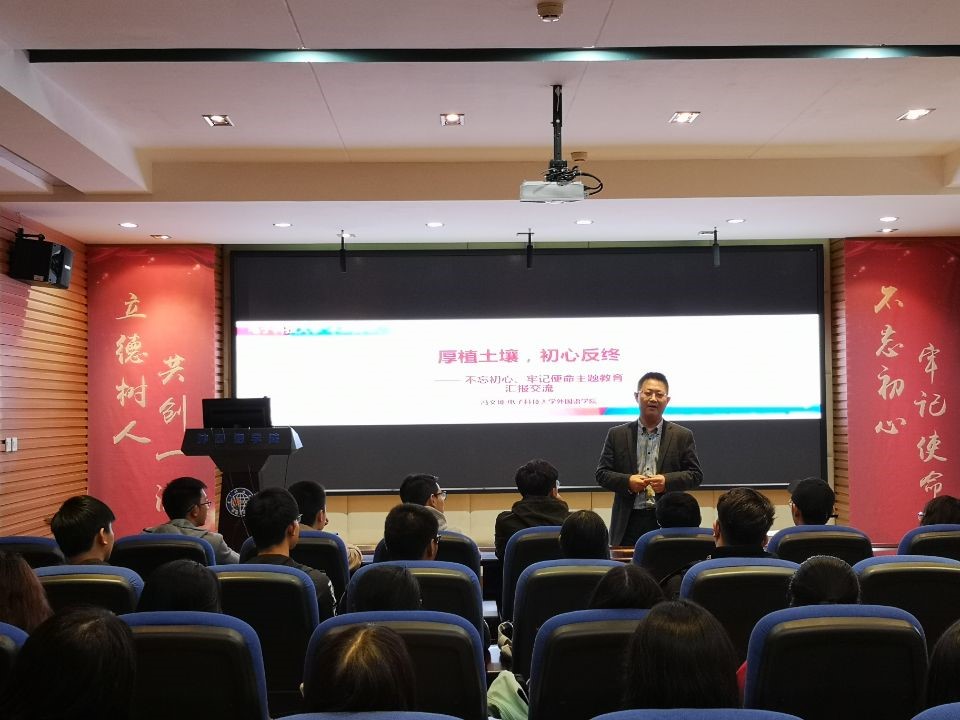 10月24日下午,外国语学院“不忘初心,牢记使命”系列党课持续进行。学院院长冯文坤教授为大一新生带来新学期第一讲——厚植土壤,初心反终,引导同学们牢记初心和使命。
