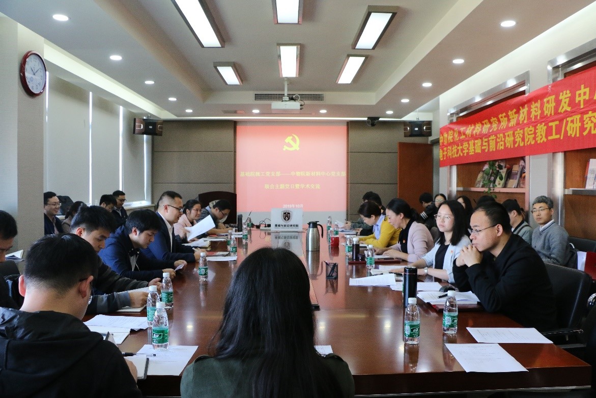 10月28日,基础院教工党支部与中物院化工材料研究所新材料研发中心党支部在通信楼818会议室联合开展主题党日暨学术交流活动,会议由基础院教工党支部书记、张妍宁主持,支部全体党员参加。
