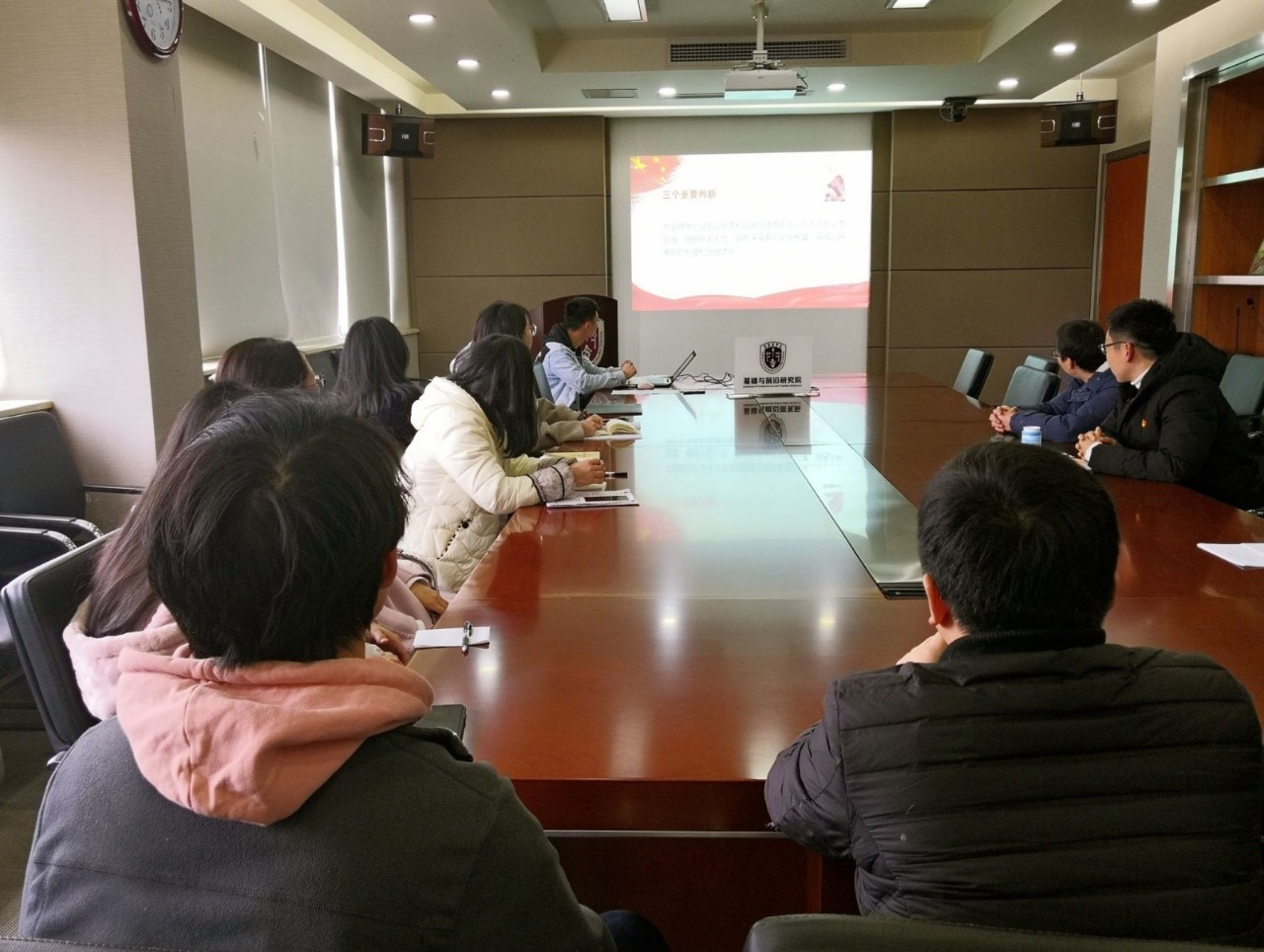 近日,为进一步落实学校“不忘初心,牢记使命”主题教育部署安排,基础与前沿研究院党总支中心组和各师生党支部以集体学习、专题研讨会等形式,深入开展党的十九届四中全会精神学习活动。