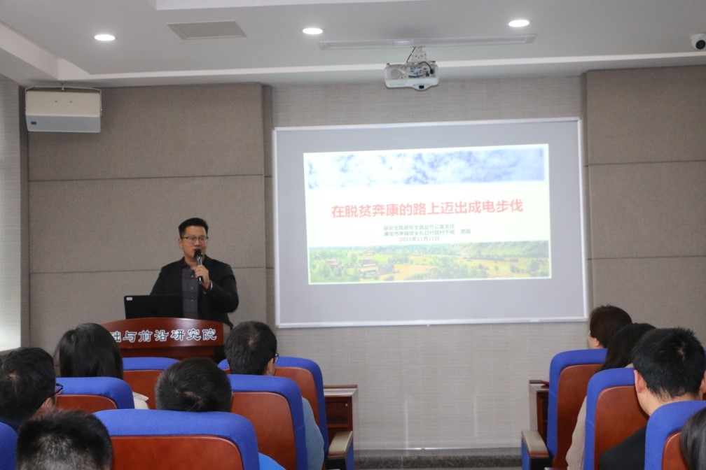 11月21日,基础院党总支召开全体党员大会学习党的十九届四中全会精神,并邀请学校驻康定甲根坝乡扎日村扶贫干部、研究生院研究生就业办公室主任路超为全院师生党员做主题分享,深入学习理解习总书记关于扶贫工作的重要论述。