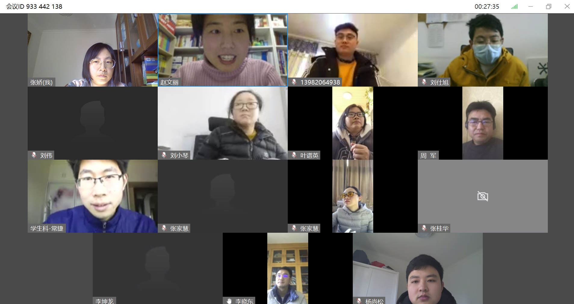 2020年2月28日下午,数学科学学院机关教职工党支部召开2月线上主题党日活动。会议由支部书记赵文丽同志主持,全体党员同志参加。