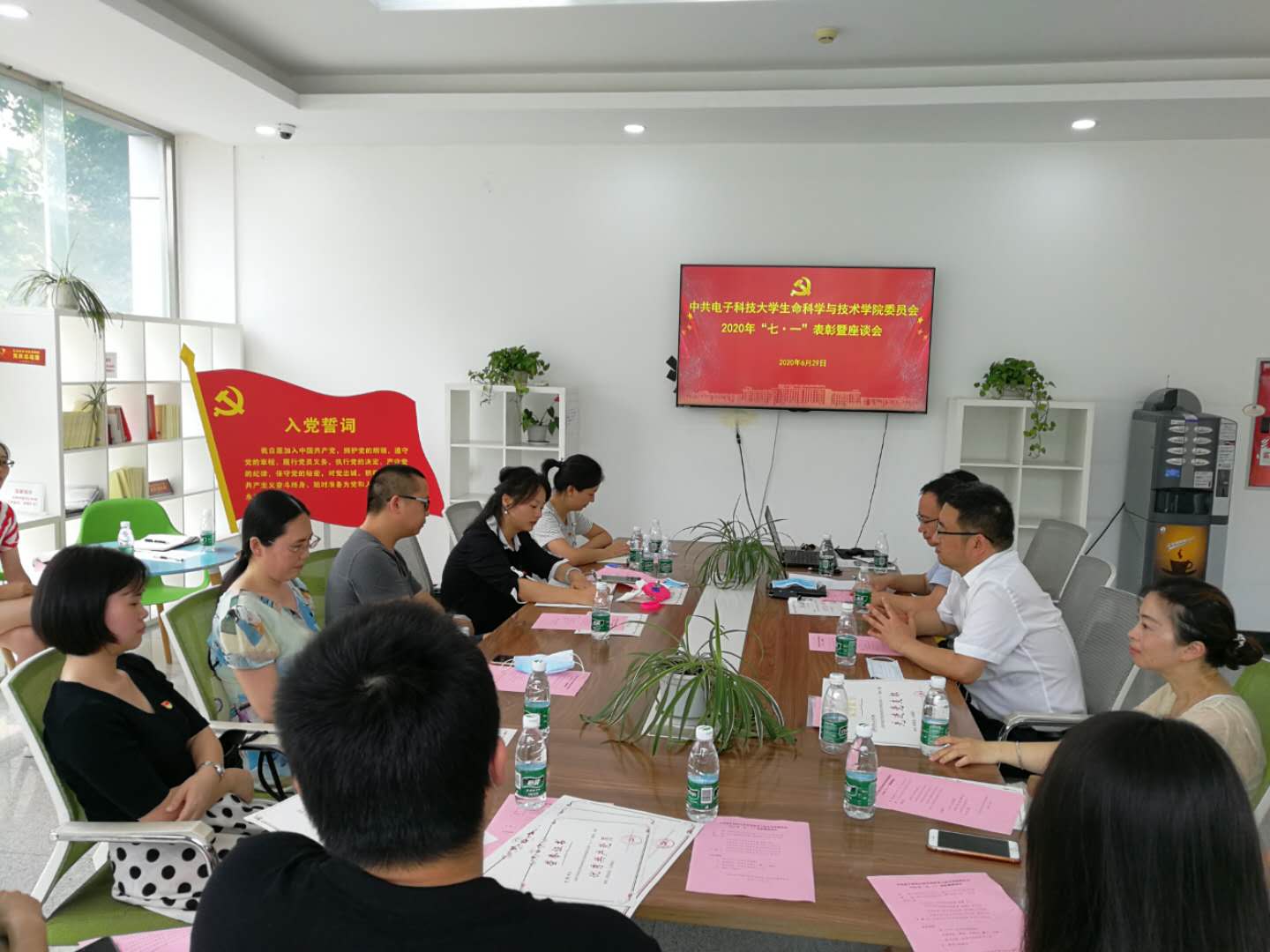 6月29日下午,生命科学与技术学院(以下简称生命学院)党委在清水河校区综合楼一楼开放会议室举行2020年“七·一”表彰暨座谈会。生命学院党委书记袁勤、副书记吴绪红,获奖党员代表、机关党支部党员代表等20余人参加会议。本次会议由生命学院组织员宋水正主持。