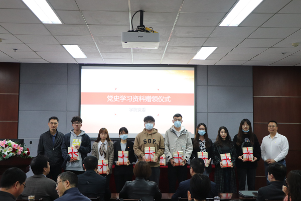 为满足广大党员同志对党史图书的阅读需求,把红色资源利用好,红色传统发扬好,红色基因传承好,让广大党员同志加强学习党史、了解党史,接受红色文化熏陶,学院党委特为各教师和学生党支部购买了党史学习资料,由学院党委委员为各支部代表赠书,营造了浓厚的党史学习教育氛围。