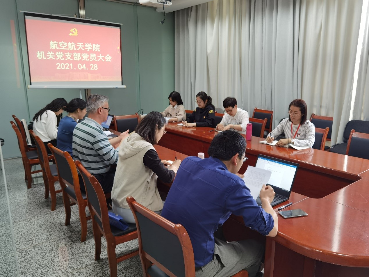 4月28日下午,航空航天学院机关支部召开支部党员大会,启动了“党史学习人人讲”第一课的学习,在学习心得交流中回顾了学院发展的里程碑。会议由支部书记胡黎黎主持,支部成员参加。支部成员党委书记刘强、副书记李孟参加支部学习。