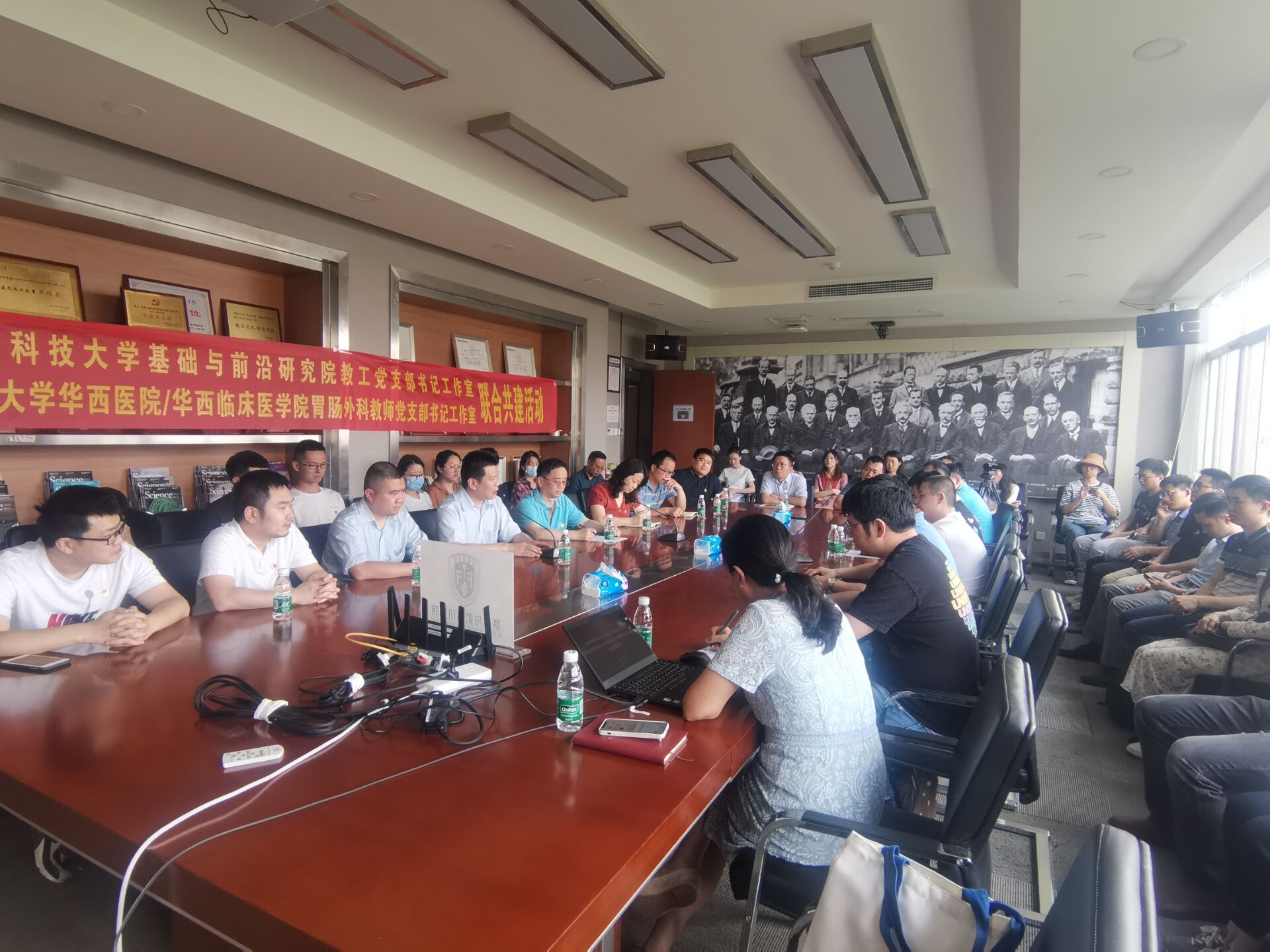 会上,张妍宁对华西医院胃肠外科教师党支部的到来表示欢迎,并从建院理念、师资队伍、人才培养、研究方向等方面介绍基础院情况,以政治建设为统领、立德树人为根本、科技报国为使命、服务师生为宗旨等四个主题介绍基础院教工党支部基本情况。她表示,基础院教工党支部以“协调发展”理念形成了一个“教-研-管”功能平台,将党建融入中心工作,把党支部的组织力转化为推进中心工作的强大动力,不断推动教学科研和管理服务与党建的相互结合、有机融入,教育引导教师党员实力践行育人、科研与服务“三位一体”功能。此次支部联合共建活动旨在于加深双方了解,希望双方教师共同合作,搭建交流平台,共同面向国家需求推进基础科研发展。