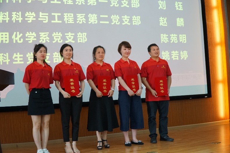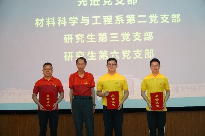第二篇章为“树榜样、学先进、立新功”颁奖典礼。本次表彰会分别设立先进党支部、优秀共产党员、优秀党务工作者和“材料先锋”,重点表彰在党建工作和推动学院发展中发挥战斗堡垒作用成绩显著的先进党支部;在学院教学、科研、管理和服务一线等基层岗位业绩突出的党员教师;在支部工作、学生成长和学院发展中乐于奉献并发挥积极带头作用的党员师生。学院党委副书记程炼同志宣读表彰决定,共计对3个师生党支部和29名师生党员进行表彰。